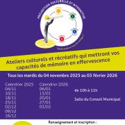 Ateliers culturels et récréatifs qui mettront vos capicités de mémoire en effervescence.